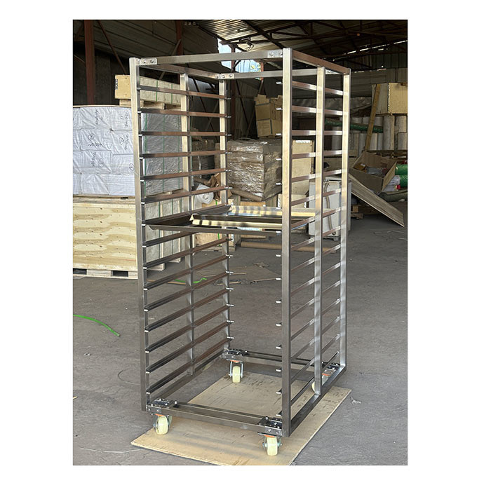 The Bakery Tray Rack Trolley is made of food grade stainless steel or aluminum alloy, with different designs and layers. Paired with different types of baking plates, it is an essential tool for baking.The tray rack trolley has a sturdy and compact structure, which can be welded or detachable for more convenient use.