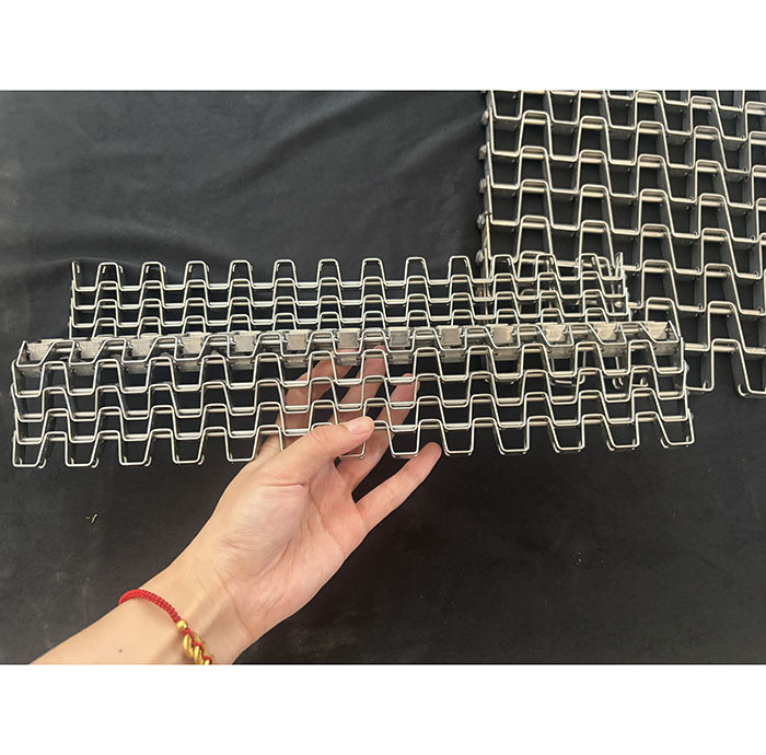 Honeycomb shaped conveyor belts (also known as Great Wall shaped or horseshoe shaped conveyor belts) consist of metal rods and flat metal chain links, forming a large, flat metal surface with excellent air circulation performance. These belts are easy to clean, maintain, and operate smoothly.