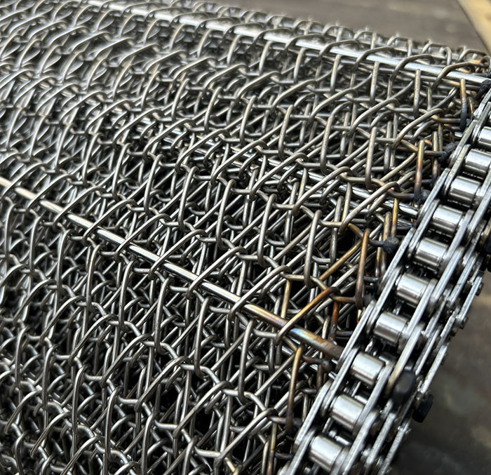 Stainless steel wire mesh chain conveyor belt is a type of conveyor belt that combines stainless steel wire mesh with interlocking chains to create a robust and versatile conveying surface. This type of belt is commonly used in industrial applications that require strength, durability, and efficient product transportation. Here are some key features and applications of stainless steel wire mesh chain conveyor belts :